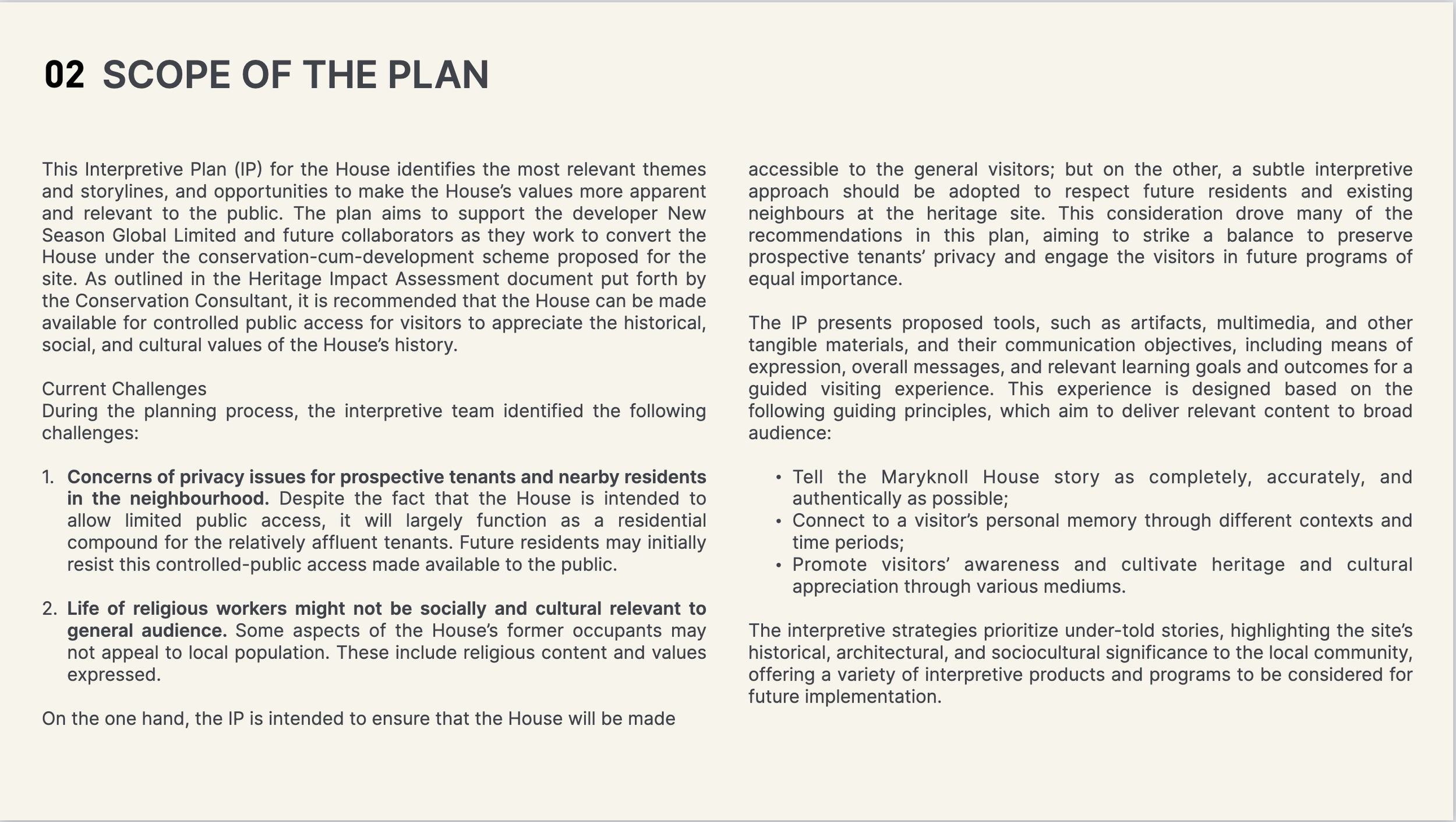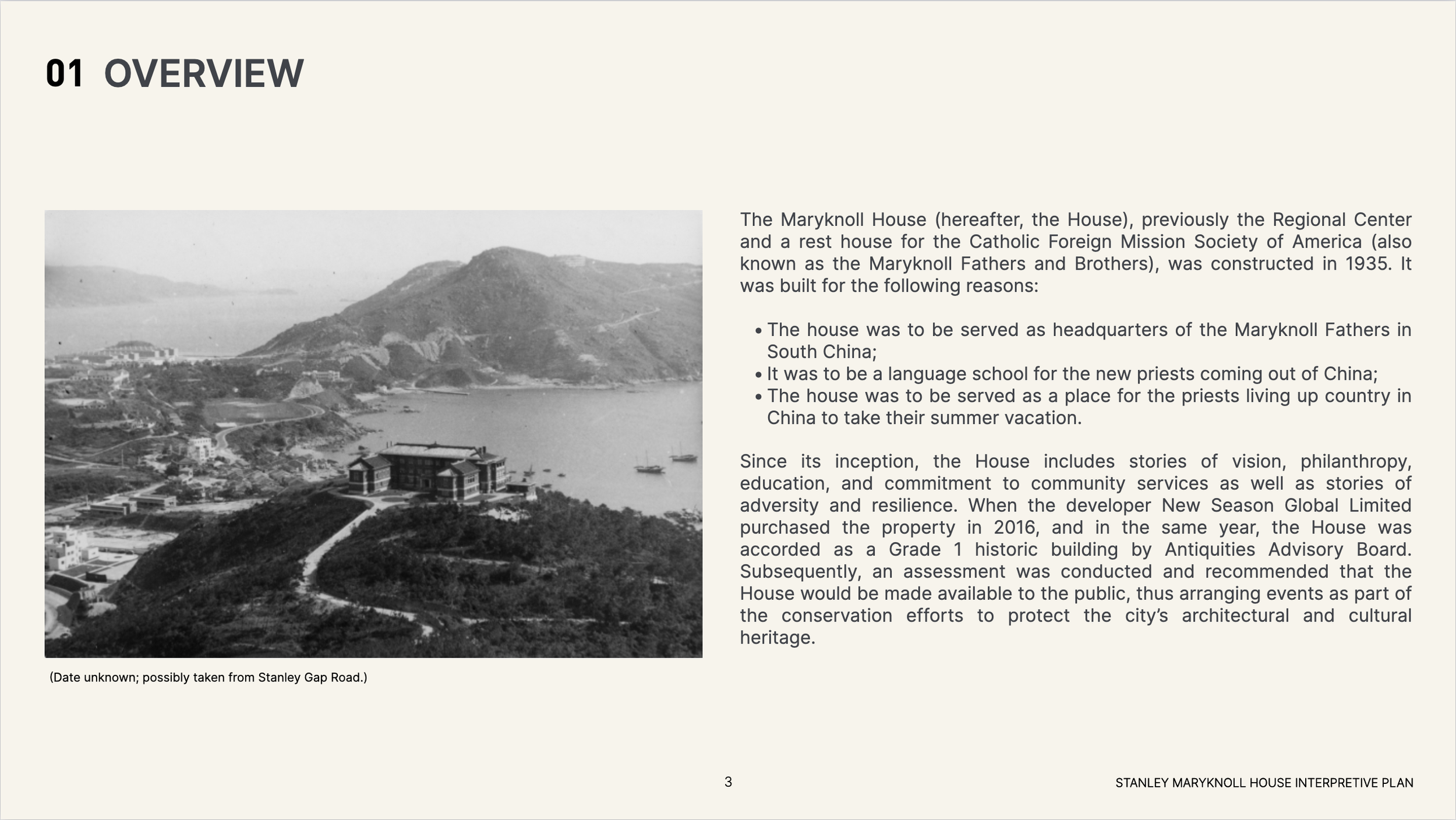 In Hong Kong, the Maryknoll House, built in 1935 by the Catholic Foreign Mission Society of America, is the foundation for a new cultural experience. The house tells a powerful story of compassion and resilience that spans seven decades. Recognized as a Grade 1 historic building by the government, Maryknoll House will soon be made accessible to the public. An interpretive plan has been proposed to outline the vision and strategy for public access, ensuring visitors can explore both the history of the house and its significance within the broader context of Hong Kong’s cultural heritage.